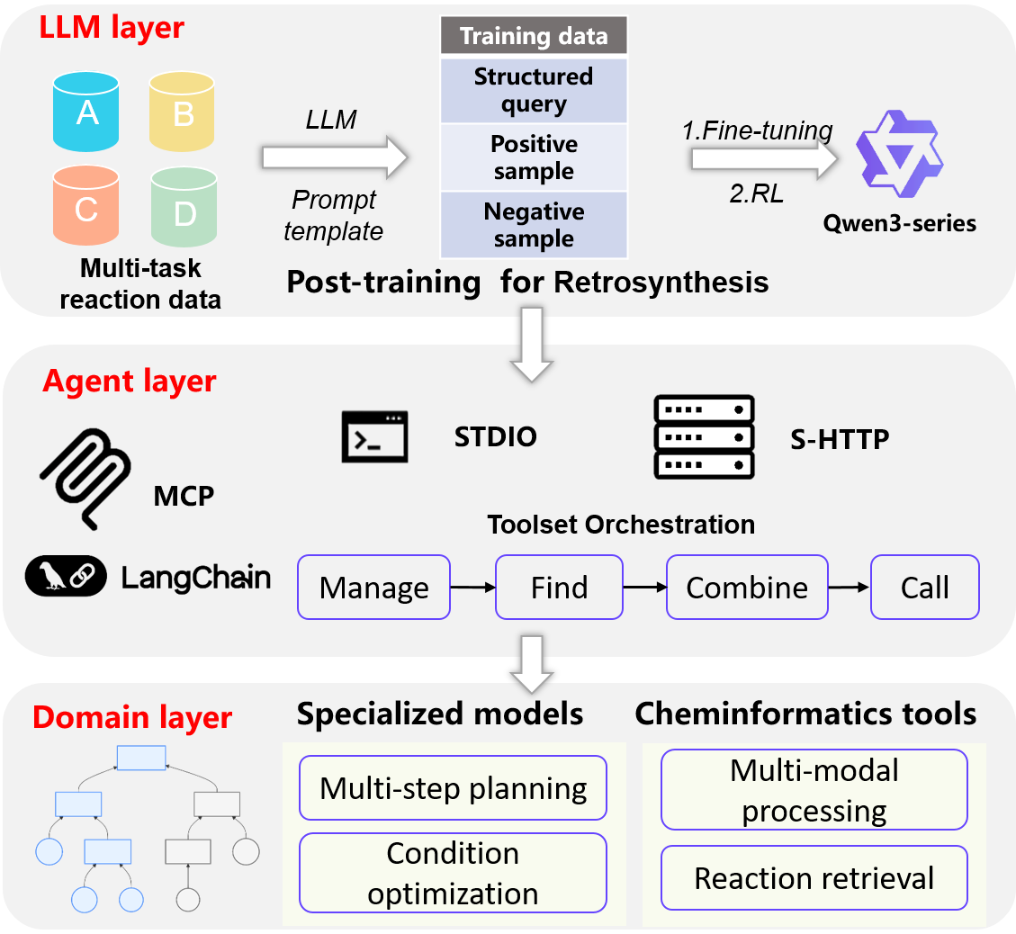 随着大语言模型(LLM)与智能体(Agent)技术的爆发,构建一个具备化学合成领域知识、进行多模态反应信息关联推理并能通过工具调用解决复杂任务的垂直领域大模型,成为推动药物CMC合成环节数智化的关键。